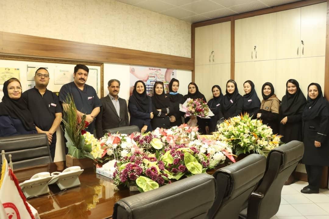 با حضور در تمام بخشهای بیمارستان واهدا گل وشیرینی به همکاران از زحمات خالصانه وخستگی ناپذیر همکاران تقدیر نمودند.همچنین به پاس قدردانی از تلاش کلیه کادر بالینی وغیر باليني مبلغ یک میلیون تومان به عنوان پاداش به تمام پرسنل بیمارستان تعلق گرفت.